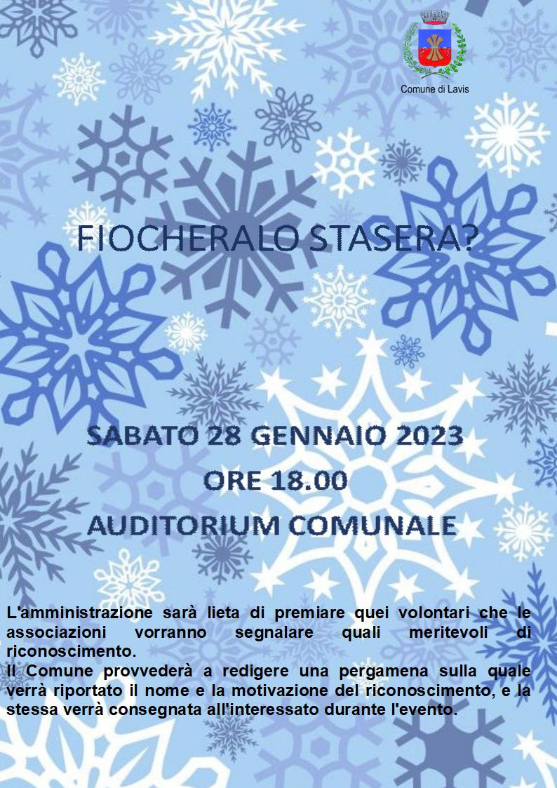 L'amministrazione sarà lieta di premiare quei volontari che le associazioni vorranno segnalare quali meritevoli di riconoscimento.
