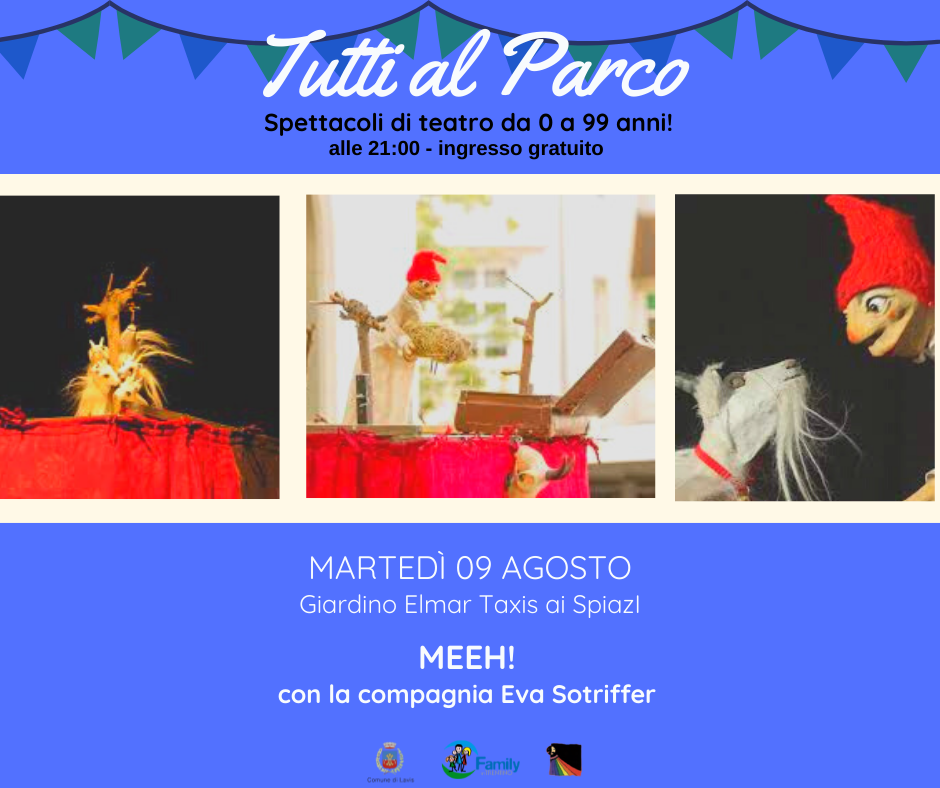 MEEH! con la compagnia teatrale Eva Sotriffer martedì 9 agosto -Giardino Elmar Taxis ai Spiazi