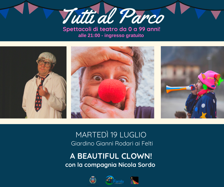 A BEAUTIFUL CLOWN con la compagnia teatrale Nicola Sordo martedì 19 luglio- Giardino Gianni Rodari ai Felti