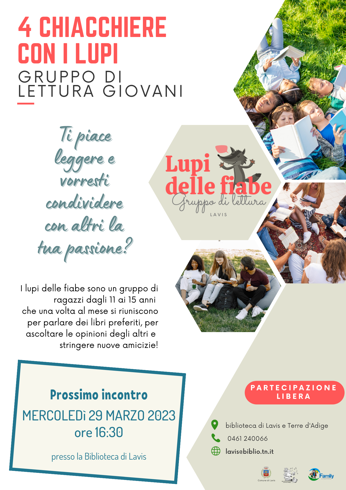 Il prossimo incontro si terrà presso la Biblioteca di Lavis mercoledì 29 marzo 2023 alle ore 16.30.